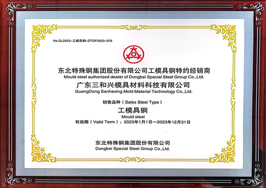 東北特鋼特約經(jīng)銷商證書-廣東2023